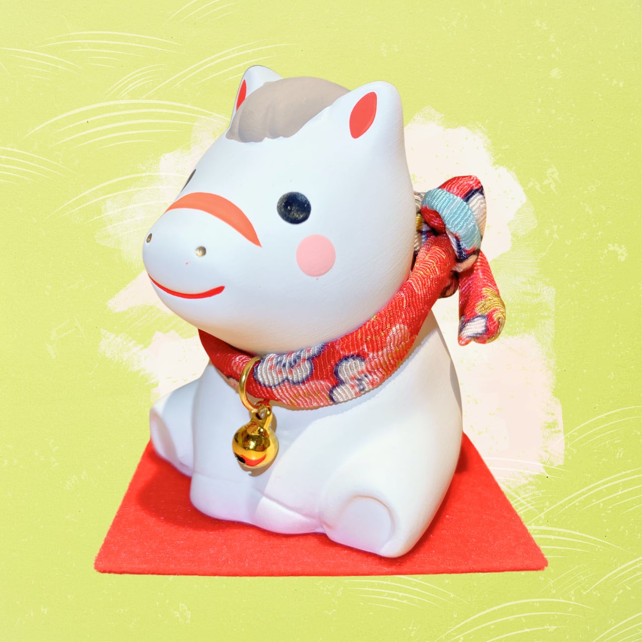 古来より午(馬)は生後すぐに走り出すことから立身出世や幸運を招く動物として人々から尊ばれてきました。どんな道も恐れず駆け抜ける姿は苦難を乗り越える力強さを感じさせ発展と向上の一年となるようにとの願いが込められています。