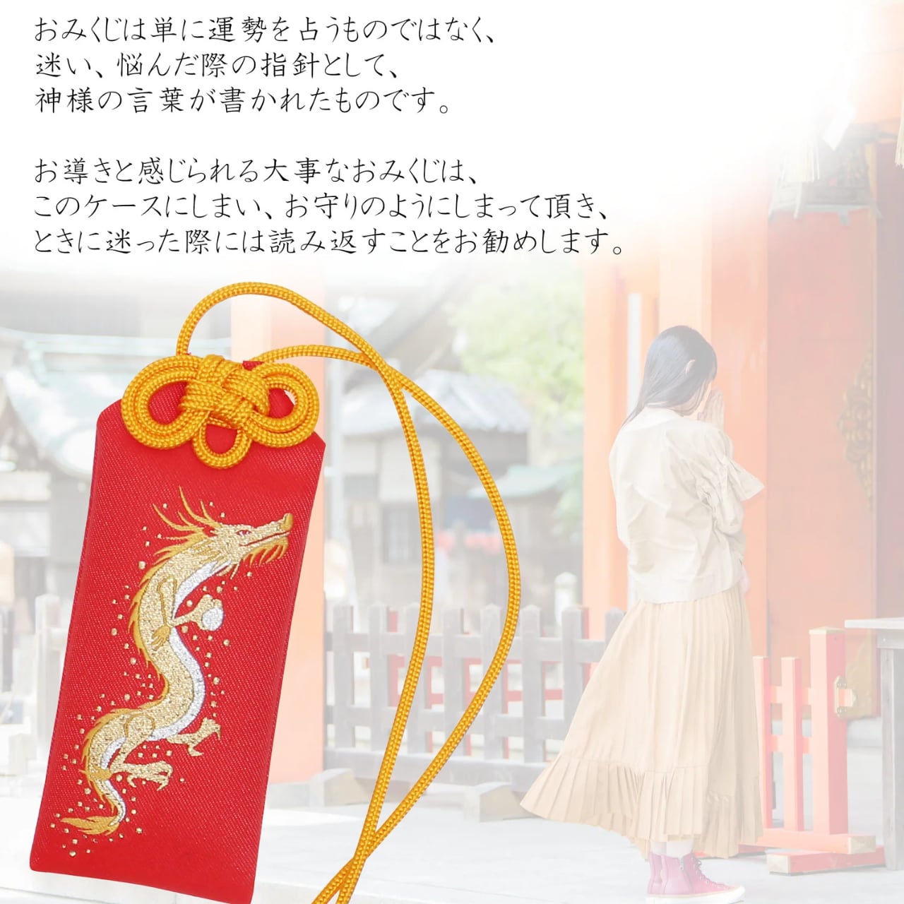 龍の力強いモチーフが印刷されたおみくじケースは、金運を引き寄せるためのデザインが施されています。大切なおみくじを安全に保管しながら、その力を最大限に活かしてください。心を込めておみくじを引くための理想的なアイテムとして、あなたの運をサポートします。