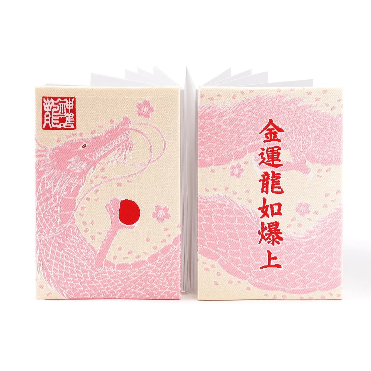 金運を呼び寄せたい方必見!『金運龍如爆上 御朱印帳(ピンク)』があなたの運をサポートします。この御朱印帳は、華やかなピンク色と力強い龍のデザインが特徴で、あなたの特別な思い出やご利益を記録するのに最適です。