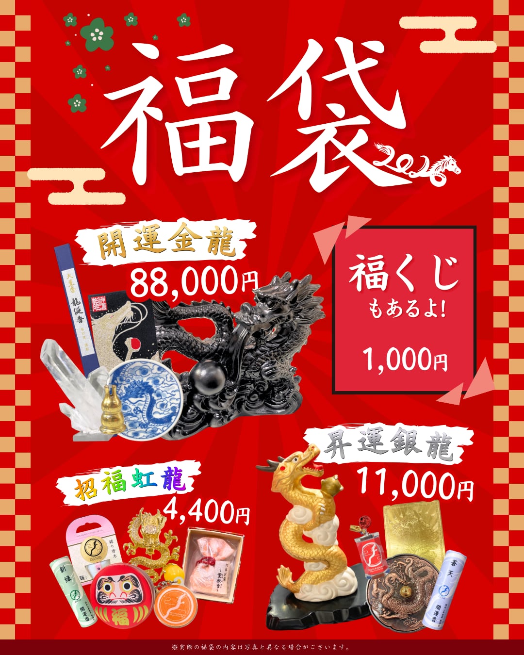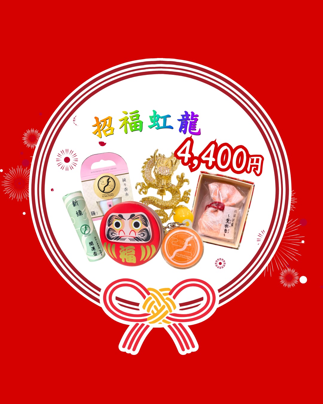 【招福虹龍】 龍のアクセサリーや雑貨など、普段の生活の中でも龍神様を意識することで、福を呼び込む福袋 アクセサリーの種類や缶のデザイン、お香の香りなどはお選びいただけませんが、 選ばれた方の今のエネルギーにあったものがお手元に届きますので、どんな商品が届くかもお楽しみに
